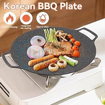 🍡 EASY TO MAKE FOOD: Korean frying pan is suitable for many kinds of food, you can cook all kinds of grilled meat, such as pork belly, pancake, fried rice cake, ribs, fried meat, etc. Can also be cooked with a small amount of broth.
