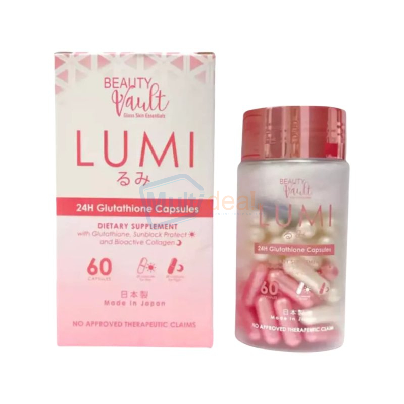 Beauty Vault Lumi 24H Glutathione Capsule 60caps. Introducing our latest product from Beauty Vault! Lumi 24Hr Glutathione Capsules Why 24Hour ⏰ protection? Day Capsule (white capsule) - infused with 250mg of Glutath!one that effectively whitens as it detoxifies your body while giving protect!ion from UVA rays with its sunblock protect ingredient harvested from fern plant. Night Capsule (night capsule) - infused with 250mg of Glutathione + 100mg of Bioactive Collagen that moistorizes and improves your skin’s elasticity at it increases collagen levels in your body.
