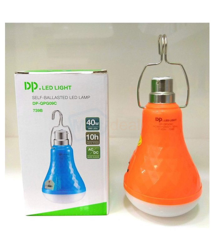 DP-740B (RECHARGEABLE LED EMERGENCY BULB) – A must for every house hold. Suitable for Studying, living room when power cut or need additional lighting. Can be used with ALTERNATE CURRENT (AC) or DIRECT CURRENT (DC). Normal Mode Use : To Use This Bulb In Normal Mode Move The On / Off Button Towards The "AC" Function.emergency light led. To Use This Bulb As Emergency Function During Power Failure Moves The On / Off Button Towards The "DC" Function And Plug Into The Socket. So It Will Get Switch On Automatically When There Is Electricity Power Cut And Gives You A Bright Light As Electricity Power High Capacity 700mAh battery gives a total of 10 hrs using time on single charge. BIS certified product. High saving super bright 40w LED.