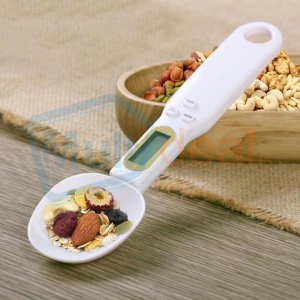 Digital spoon scale with LCD display.