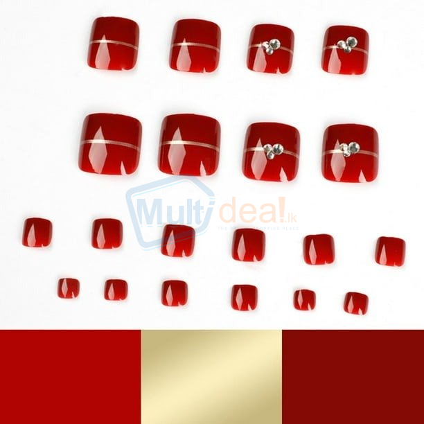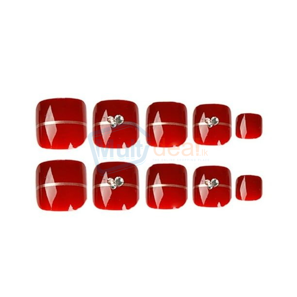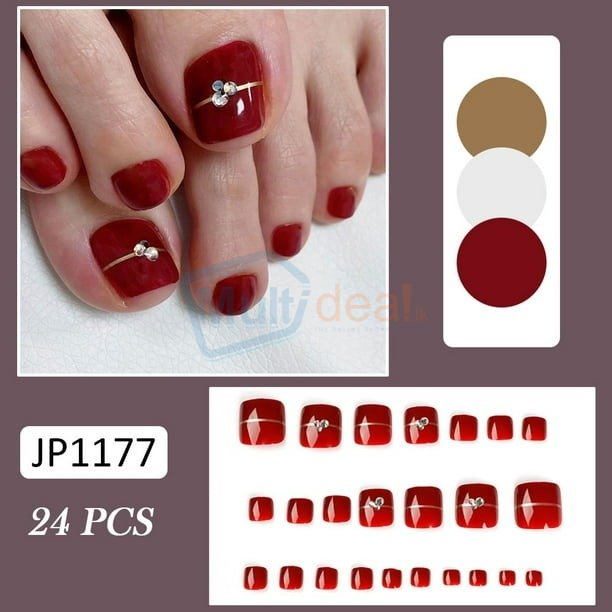 Elevate Your Style with Our Glossy Wine Red Glitter False Toenails - Best price in Sri Lanka