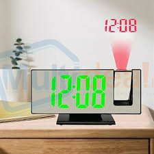 Features: Projector that projects the exact time, rotating 180 degrees Alarm clock with snooze function Digital thermometer in °C or °F Powered by battery: CR2032 or via USB charging Dimensions: 18.5×9.5×4.2 cm Includes : Clock Battery USB charging cable