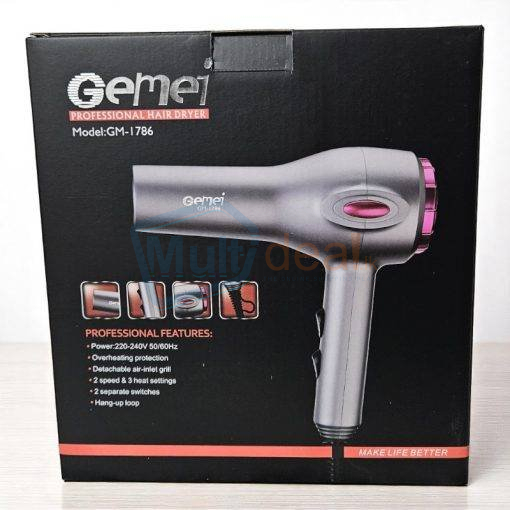 Gemei GM-1786 Professional Hair Dryer 2000W Blow Dryer with Air Concentrator Speed & Heat Settings for Fast Drying & Frizz-Free Styling - Best price in Sri Lanka