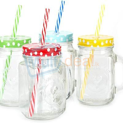 Jar Mug With Lid And Straw Smoothie Ice Cream Fruit Cold Drinking Water Jars Juice Cup Straw Jar 400 Ml Glass Fridge - Best price in Sri Lanka