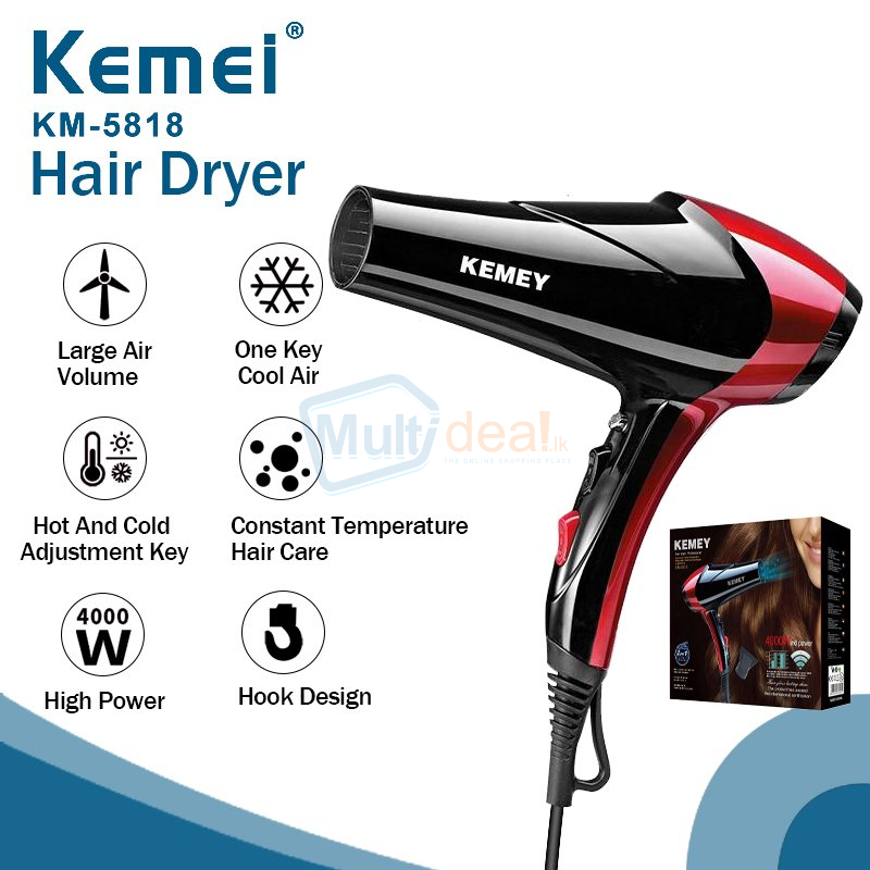 Kemei KM-5818 Professional Hair Dryer with 6 month warranty - Best price in Sri Lanka