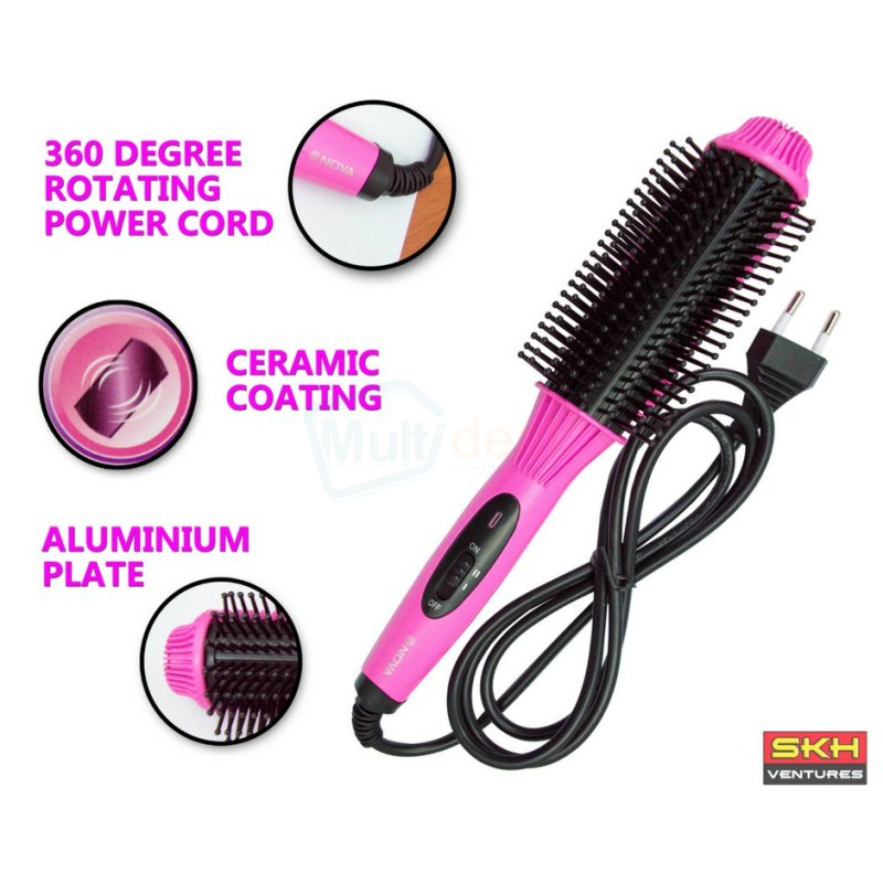 Nova Hair Auto Straightener NHC-8810 Hair Curler Straightener Brush Styling Tools, Professional Straightening Comb Electric Flat Iron, Fast Hair Comb Straightener - Best price in Sri Lanka