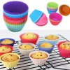 12-pack of reusable baking cups; made of food-grade silicone; ideal for baking, lunch/snack cups, and more