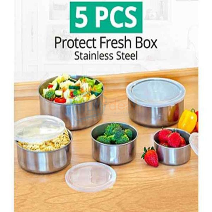 Five (5) pcs stainless steel bowl set with polypropylene lid